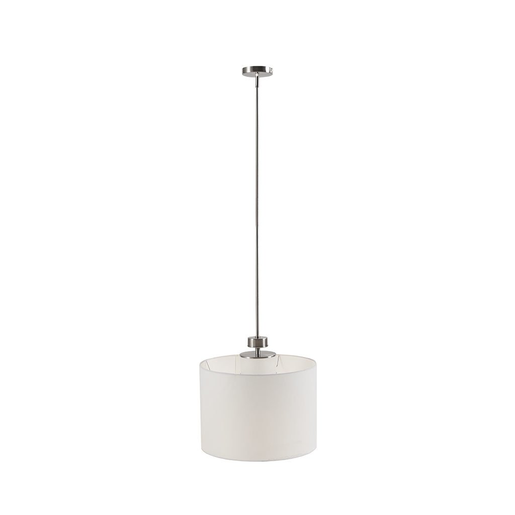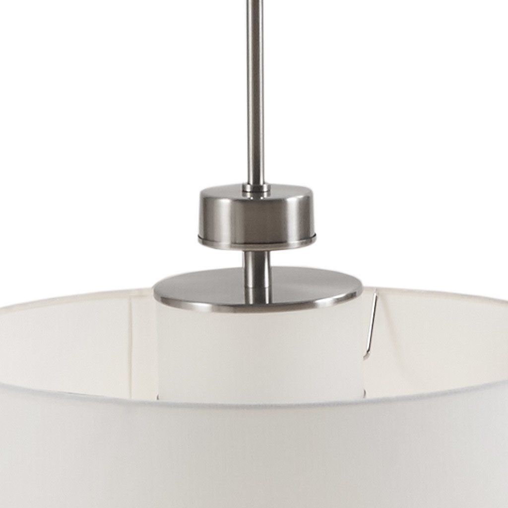 The Pacific Metal Pendant with Drum Shade is the perfect update of urban sophistication to any room. A metal and glass light diffuser is featured in a silver finish, completed with a white linen fabric shade for a simple update. 1 bulb is needed. Assembly required.